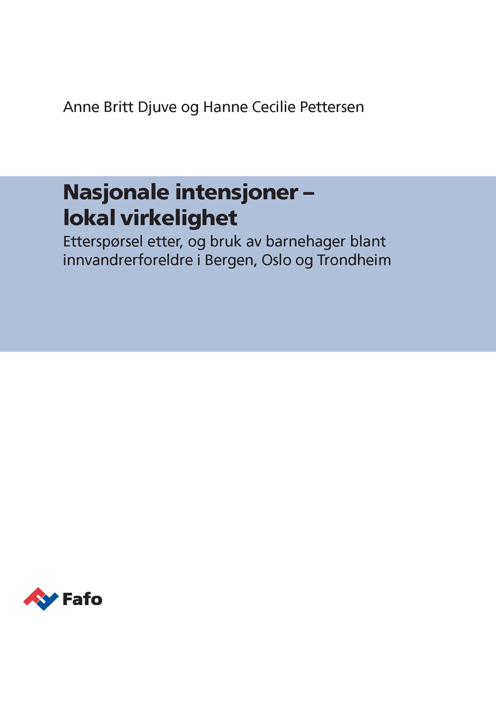 Dette notatet er skrevet på oppdrag fra Barne- og Familiedepartementet. Bakgrunnen for dette forprosjektet var departementets bekymring over at barnehagedeltagelsen blant innvandrerbarn var svært lav. I Stortingsmelding nummer 17 om innvandring og det flerkulturelle Norge, legges det vekt på at foreldre med innvandrerbakgrunn skal ha de samme muligheter som andre foreldre til å finne egnede barnehagetilbud til sine barn. Det tilgjengelige datamaterialet på dette feltet, for eksempel om innvandrerbarns barnehagebruk, har imidlertid vært mangelfullt. Prosjektet har derfor vært konsentrert om innhenting og sammenstilling av eksisterende informasjon om etterspørsel etter og bruk av barnehager blant barn med innvandrerbakgrunn. Datainnsamlingen har vært avgrenset til byene Bergen, Trondheim og Oslo.