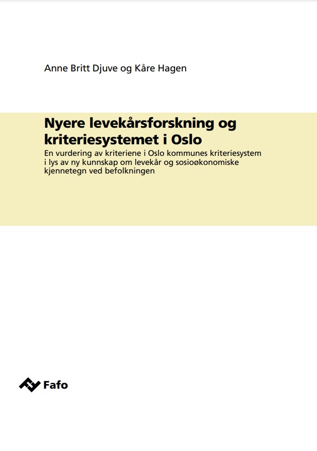 Dette notatet er skrevet på oppdrag for Oslo kommune. De ønsket en gjennomgang av nyere levekårsforskning som kunne være relevant for utformingen av det kriteriebaserte budsjettsystemet i Oslo, og en vurdering av de enkelte kriteriene i lys av den nye kunnskapen. Vi har prioritert å gjengi forskning som er publisert etter Fafos forrige evaluering av kriteriesystemet (1996), og som er mest mulig relevant for utforming av sosiale indikatorer.