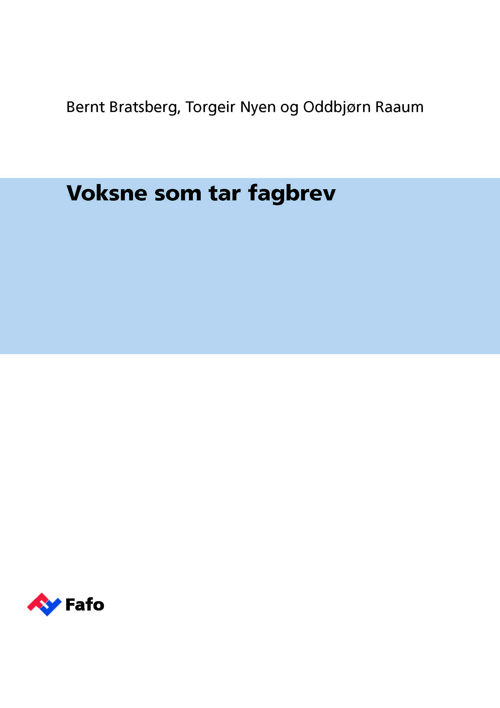 Mange fullfører videregående opplæring i voksen alder i Norge. Det finnes gode muligheter for å ta fagbrev som voksen, blant annet gjennom praksiskandidatordningen som gir voksne med lang og variert arbeidserfaring i et fag mulighet for å gå opp til fagprøve og ta fagbrev. I dette notatet analyserer vi blant annet hvilken sosial bakgrunn de som tar fagbrev som voksne har. Er dette veier til formell yrkeskompetanse og fullført videregående opplæring for grupper som i mindre grad fullfører videregående opplæring som unge? Eller er det sosiale rekrutteringsgrunnlaget det samme for voksne som tar fagbrev, som det er for unge? Notatet er utarbeidet i et samarbeid mellom Fafo og Frischsenteret.