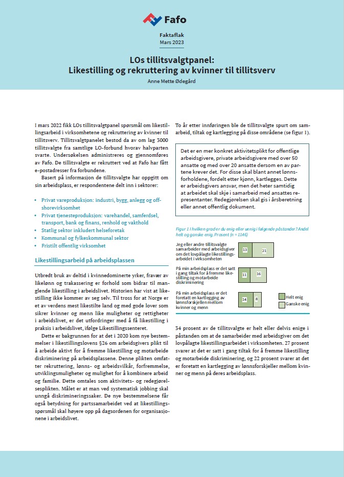 LOs tillitsvalgtpanel: Likestilling og rekruttering av kvinner til tillitsverv