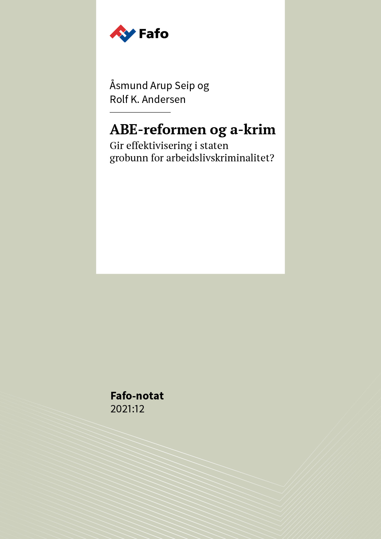 De siste tiårene har det skjedd store endringer i arbeidslivet med en betydelig arbeidsinnvandring, etablering av bemanningsselskaper og utenlandske oppdragstakere. Dette har gitt kriminelle større spillerom. Denne rapporten ser på sammenhengen mellom to reformer som berører fire statlige etater. ABE-reformen har siden 2015 vært et virkemiddel i regjeringens arbeid for å effektivisere og avbyråkratisere offentlig sektor gjennom budsjettkutt. Samtidig har regjeringen lansert en strategi til bekjempelse av arbeidslivskriminalitet. Rapporten viser at ABE-reformen kan ha bidratt til at arbeidet mot arbeidslivskriminalitet har blitt tilført betydelige midler. Samtidig kan ABE-kutt i etatene ha svekket etatenes samlede innsats og begrenset effekten av a-krimsatsingen.