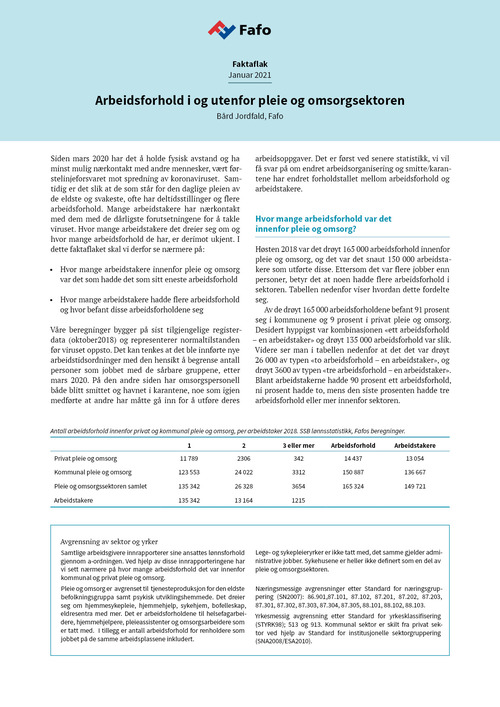 Arbeidsforhold i og utenfor pleie og omsorgsektoren