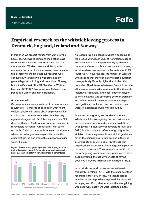 The right to speak up and the channels for doing so: A comparative study of Denmark, England, Ireland and Norway | Faktaflak