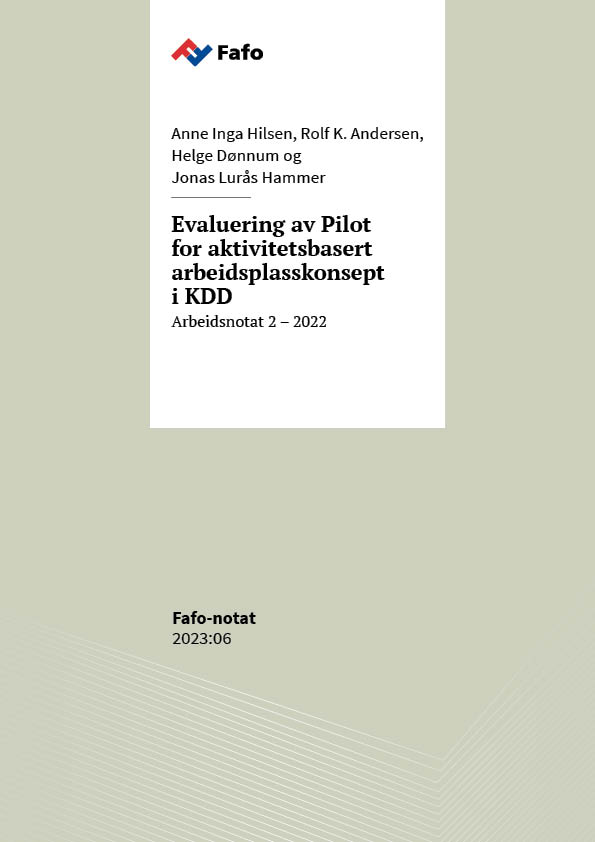 Hva skjer når ansatte i departementene går fra egne kontorer til aktivitetsbaserte arbeidsplasser uten faste plasser? Fafo, i samarbeid med PwC, evaluerer erfaringene med Pilot for aktivitetsbasert arbeidsplasskonsept i Kommunal- og distriktsdepartementet. Hensikten med evalueringen er å gi kunnskap for planlegging og forberedelser av departementenes innflytning i det nye regjeringskvartalet i 2025. Dette notatet oppsummerer det andre året av piloten.