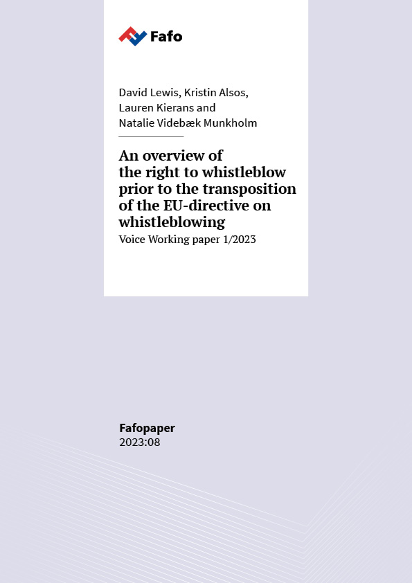 This working paper provides a description of national regulations regarding employees’ right to whistleblowing in Denmark, Ireland, Norway, and the United Kingdom, as they stood before these countries (except for the United Kingdom), implemented the EU Whistleblower Directive (2019/1937/EU) into national law. The paper is written as part of the project “Workers’ voice and the right to manage - the case of whistleblowing in a comparative context”.