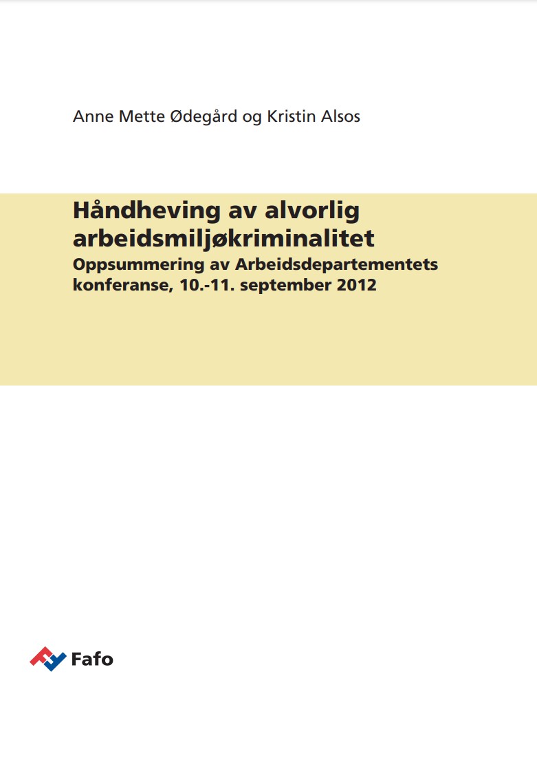 Arbeidsmiljøkriminalitet kan ha alvorlige følger, ikke minst for den enkelte arbeidstaker. Dersom bruddene på regelverket ikke får konsekvenser, kan det framstå som et lønnsomt alternativ for useriøse bedrifter og skape en vanskelig konkurransesituasjon for bedrifter som følger regelverket. Dette er utgangspunktet for Arbeidsdepartementets arbeid med hvordan arbeidsmiljøkriminalitet skal håndheves. Dette notatet er en oppsummering av departementets konferanse om temaet i september 2012.