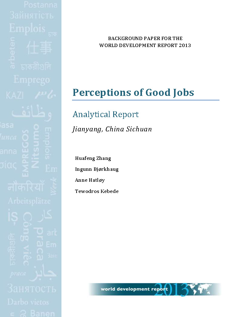 The Perceptions of Good Jobs study has been conducted in order to better understand and explain how jobs are perceived in a number of selected countries. The report is primarily targeted to provide inputs towards the WDR 2013 and is part of a series of studies conducted on perceptions of good jobs in four countries: Colombia, China, Egypt and Sierra Leone. The main emphasis has been to explore the nature of jobs that affect living standards and enhance social cohesion. The report addresses the following research questions: