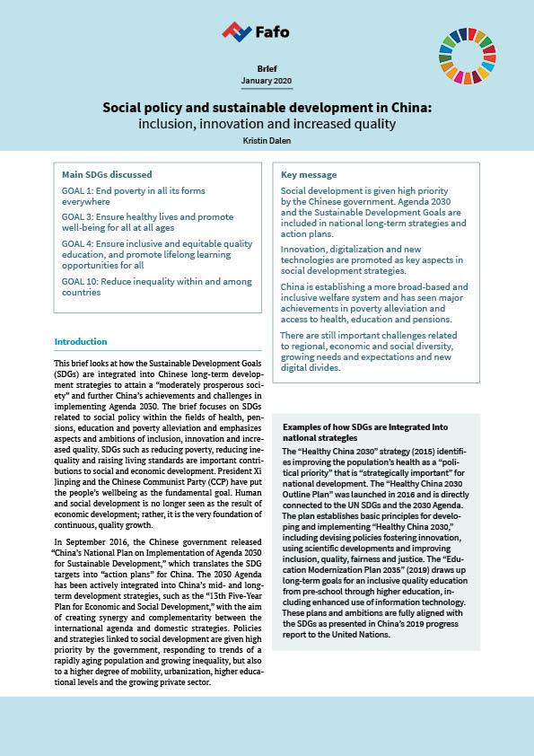 Social policy and sustainable development in China