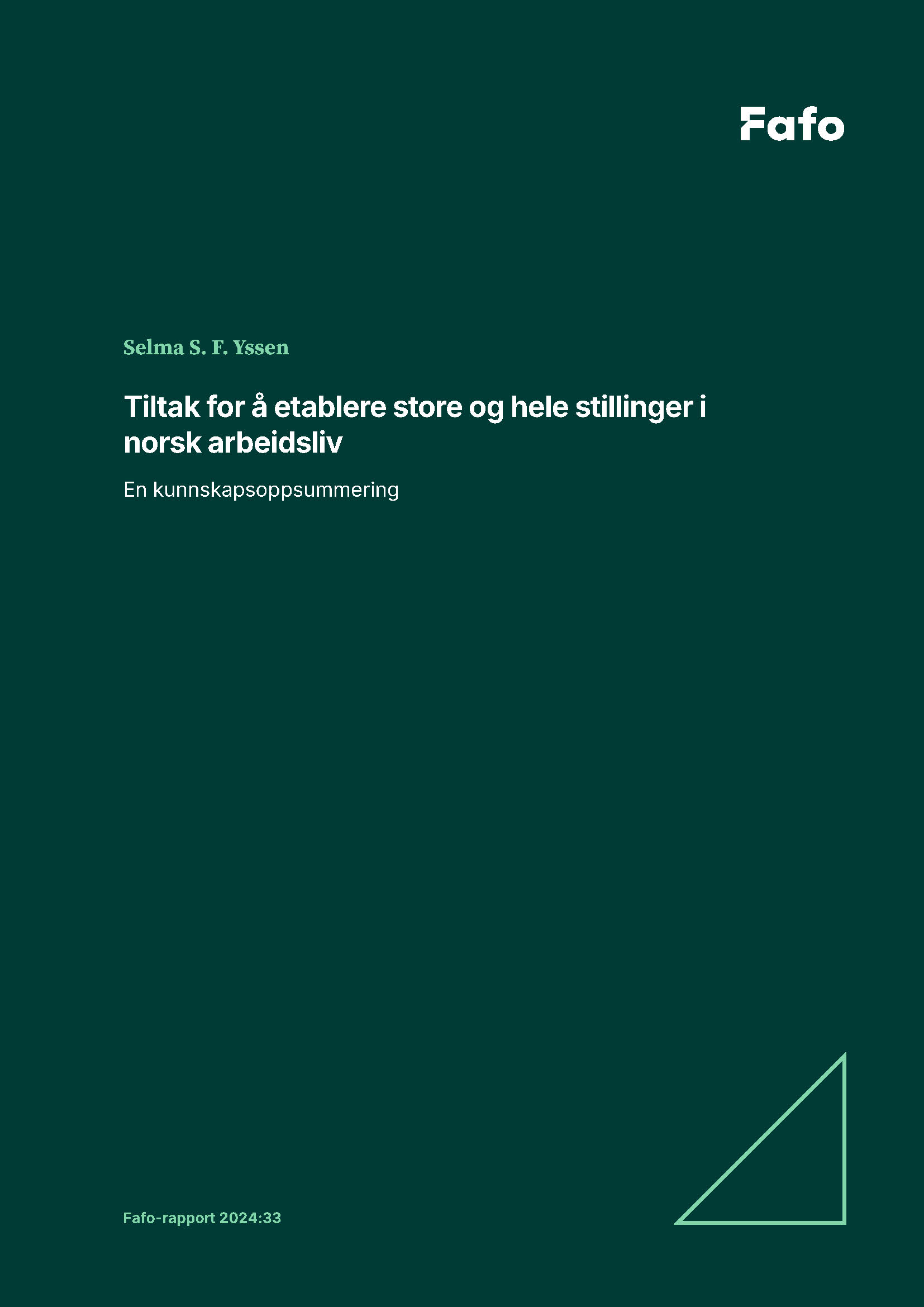 I dette notatet oppsummerer vi kunnskapen om tiltak for store og hele stillinger på arbeidsplass- eller virksomhetsnivå både i en norsk og skandinavisk kontekst.