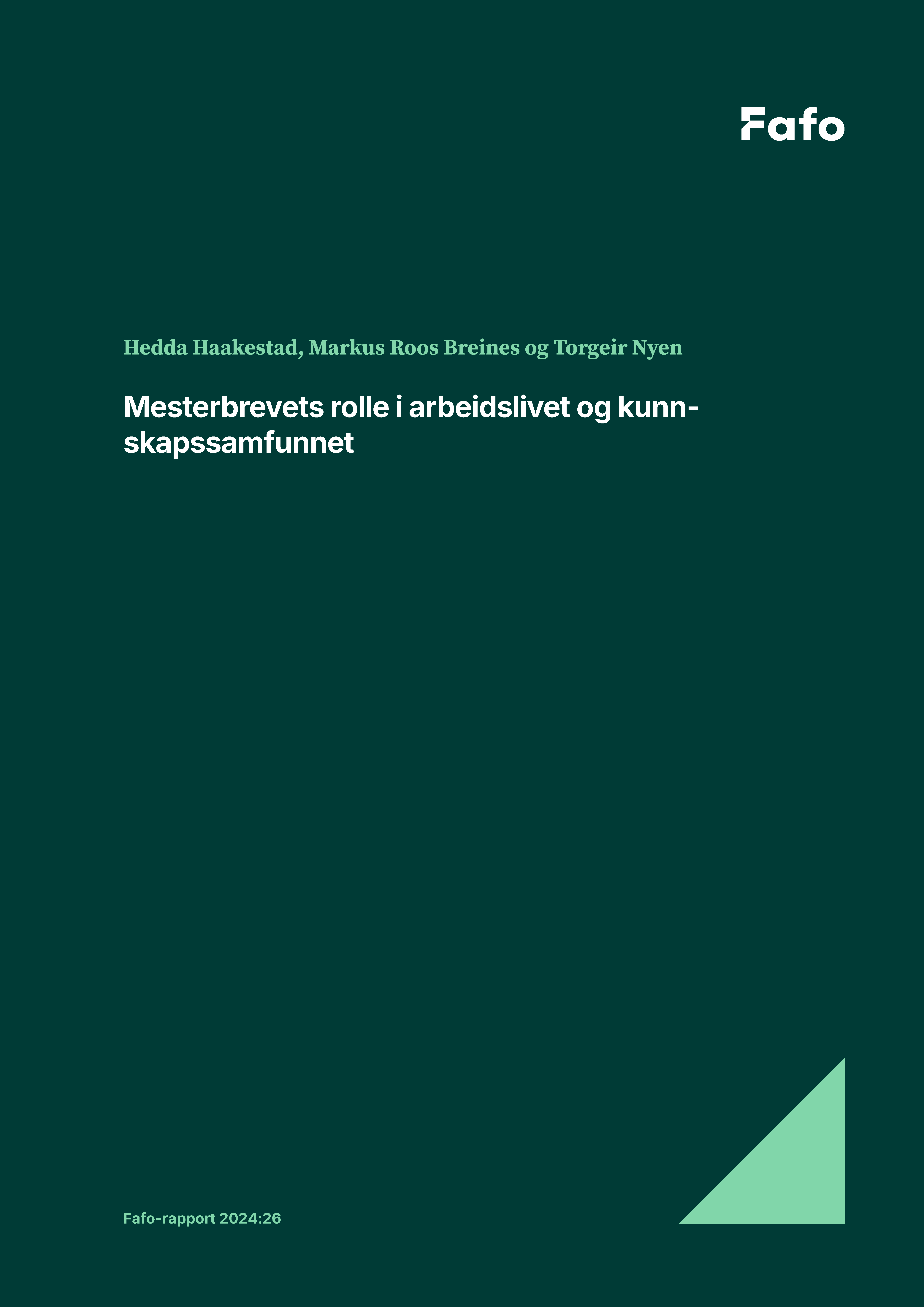 I denne Fafo-rapporten gir Fafo-forskerne Hedda Haakestad, Markus Roos Breines og Torgeir Nyen et oversiktsbilde av hvilken rolle mesterbrevet spiller i arbeidslivet og kunnskapssamfunnet i dag. Rapporten bygger på casestudier i fire fag og en survey blant mestere. I tillegg bygger rapporten på tidligere forskning, deskriptive analyser av Mesterbrevnemndas register og en gjennomgang av litteratur og dokumenter om andre lands mesterbrevordninger.