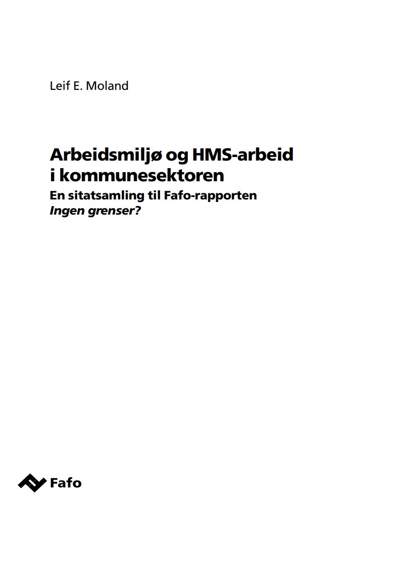 Dette er en samling av sitater fra samtaler med ca 120 ansatte og ledere i fire kommuner om arbeidsmiljøet i pleie- og omsorgssektoren og kommunens arbeid med Internkontroll for Helse, miljø og sikkerhet. Intervjuene ble foretatt i 1998