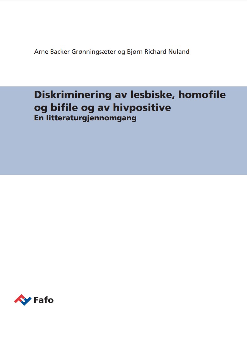 Dette notatet presenterer funnene fra en litteraturgjennomgang av samfunnsvitenskapelige undersøkelser av homofile, lesbiske og bifile sin situasjon, og av hivpositives situasjon.  Formålet med undersøkelsen har vært å få en oversikt over hva som finnes av dokumentasjon om homofile, lesbiske, bifile samt hivpositives stilling i samfunnet, og gjøre rede for karakter og omfang av eventuell forskjellsbehandling, diskriminering og trakassering. Studien skal bidra til diskrimineringslovsutvalgets arbeid med å vurdere om det er behov for å utvide vernet mot diskriminering på grunn av seksuell orientering til å gjelde også utenfor arbeidslivet og bolig, og om behov for utvidet vern mot diskriminering på grunnlag av at man er hivpositiv.