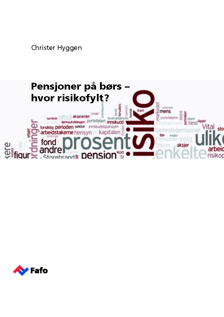 Som et resultat av innføringen av obligatorisk tjenestepensjon og framveksten av innskuddsbaserte tjenestepensjoner er det blitt en tettere sammenheng mellom framtidige pensjonsytelser og utvikling i finansmarkedene. Drøyt 850 000 arbeidstakere i privat sektor har nå deler av sine pensjonsmidler eksponert for risiko i markedet ved at de er plassert på individuelle konti med individuelle investeringsvalg. I dette notatet har vi sett nærmere på ulike former for risiko knyttet til pensjonsinnretninger, med særlig vekt på plassering av midlene fra de innskuddsbaserte tjenestepensjonsordningene i fond med ulike risikoprofiler. Vi finner at de færreste tar aktive investeringsvalg. Vi ser også at de fondene som i dag forvalter pensjonsmidlene ser ut til å være i stand til å levere avkastning på linje med både konsumprisindeksen og den gjennomsnittlige lønnsutviklingen.
