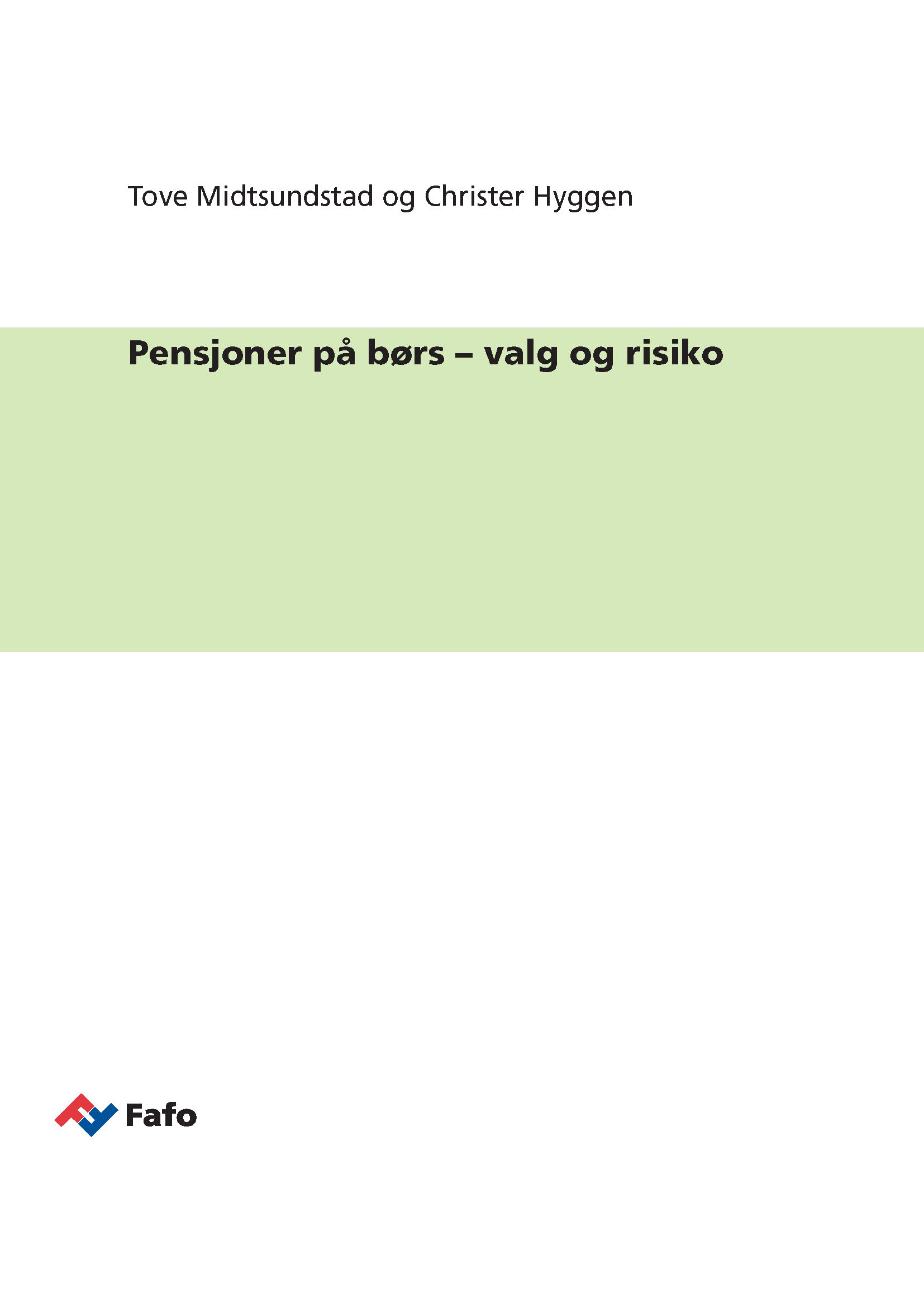 Notatet er en del av Fafos strategiske instituttprogrammet ”Tjenestepensjonsmarkedet i endring”. Programmet er finansiert av Arbeidsdepartementet og løper fra 2008-2012.  Det er en oppfølging av notatet ”Pensjoner på børs – hvor risikofylt” fra 2010, som redegjorde for  risiko forbundet med ulike pensjonsordninger, og hvordan risikofordelingen mellom henholdsvis stat, arbeidsgiver, arbeidstakere og pensjonister hadde endret se som følge av pensjonsreformen. Dette notatet gir en foreløpig beskrivelse av arbeidstakeres kunnskap om pensjonsreformen, pensjonssystemet og egen tjenestepensjonsordning basert på data fra en surveyundersøkelse blant et representativt utvalg arbeidstakere i privat sektor. Det gis også en oversikt over hvordan arbeidstakeres med innskuddspensjon forholder seg til den endrede risiko som følger av pensjonsreformen og de mulighetene for investeringsvalg som følger av endringene i tjenestepensjonsregimet. I tillegg gis en beskrivelse av ønsket tidspunkt for uttak av pensjon og arbeidsslutt etter fylte 62 år. Data vil videreanalyseres, og mer dyptpløyende analyser vil publiseres senere.