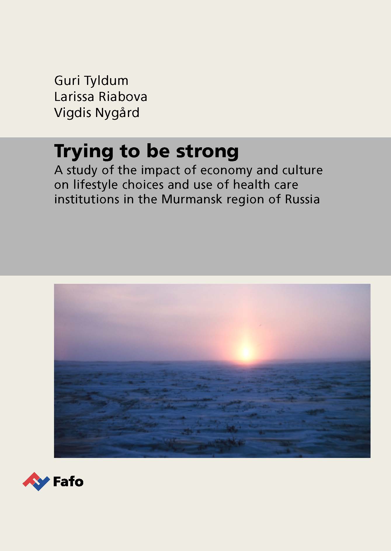 Trying to be strong portraits the health challenges and problems that individuals face in the Russian North . The analysis focuses on lifestyles, with particular emphasize on how people think and act in relation to risk factors such as diets, alcohol, smoking, stress, and workplace security. The analysis is based on interviews with more than 50 ordinary Russian citizens, health care workers and representatives from public administration in the city of Apatity and a nearby village in Murmansk oblast’.