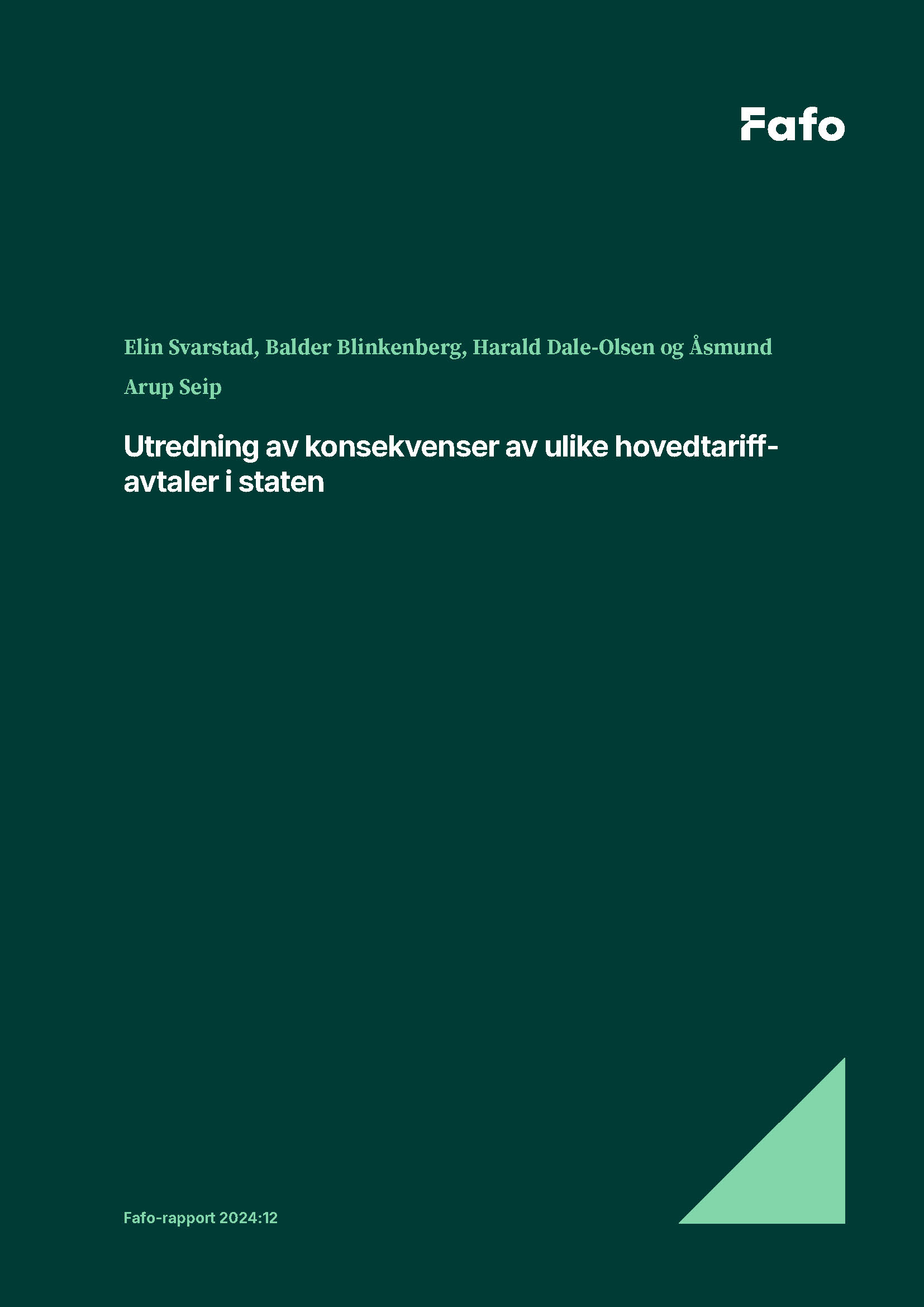 Denne rapporten er skrevet i samarbeid mellom Fafo og Institutt for samfunnsforskning (ISF), på oppdrag fra Digitaliserings- og forvaltningsdepartementet (DFD) våren 2024. Formålet med prosjektet har vært å belyse konsekvenser av ulike hovedtariffavtaler i det statlige tariffområdet. Vurderingene knytter seg særlig til forholdet mellom sentral og lokal lønnsdannelse, hensynet til minstelønn, lavlønn og likelønn, ivaretakelse av fleksibilitet med hensyn til endringer og tilpasninger i arbeidsmarkedet, muligheten for å rekruttere og beholde kompetent arbeidskraft, håndtering av de uorganiserte, og hensynet til ufravikelighet og likebehandling. Til grunn for analysene ligger registerdata med lønnsopplysninger om statlig ansatte hentet inn av Direktoratet for økonomistyring (DFØ), en spørreundersøkelse gjennomført av Kommunal- og distriktsdepartementet (KDD), og i tillegg 16 kvalitative intervjuer med representanter fra arbeidsgiver- og arbeidstakersiden på sentralt og lokalt nivå.