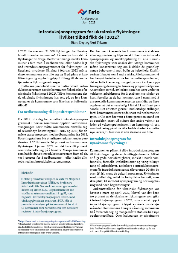 Introduksjonsprogram for ukrainske flyktninger. Hvilket tilbud fikk de i 2022?