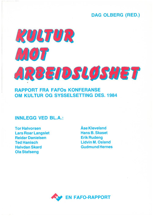«Kultur mot arbeidsløshet» var tittelen på FAFOs konfe­ranse om kultur og sysselsetting i desember 1984. Konferansen satte søkelys på både kulturpolitikk og arbeidsmarkedspolitikk. I dag står vi overfor store utfordringer både når det gjelder kulturlivet og arbeids­livet. På flere felter griper problemstillingene om kultur og sysselsetting over i hverandre.