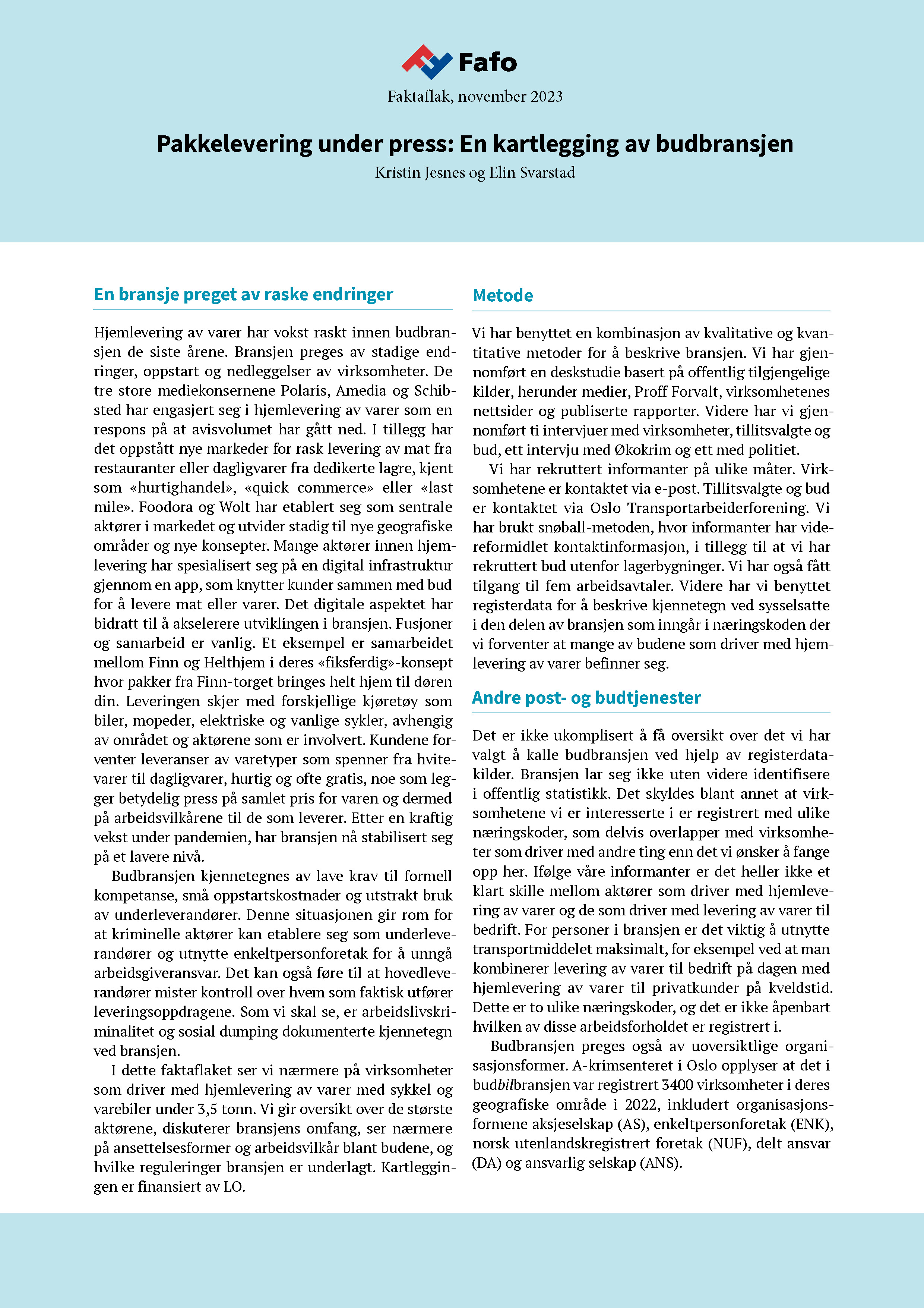 Hjemlevering av varer har vokst raskt innen budbransjen